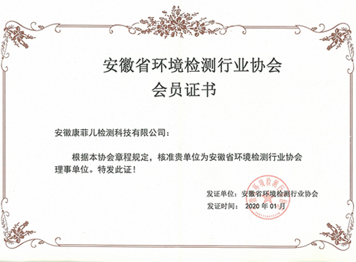 安徽省環(huán)境檢測(cè)行業(yè)協(xié)會(huì)會(huì)員證書