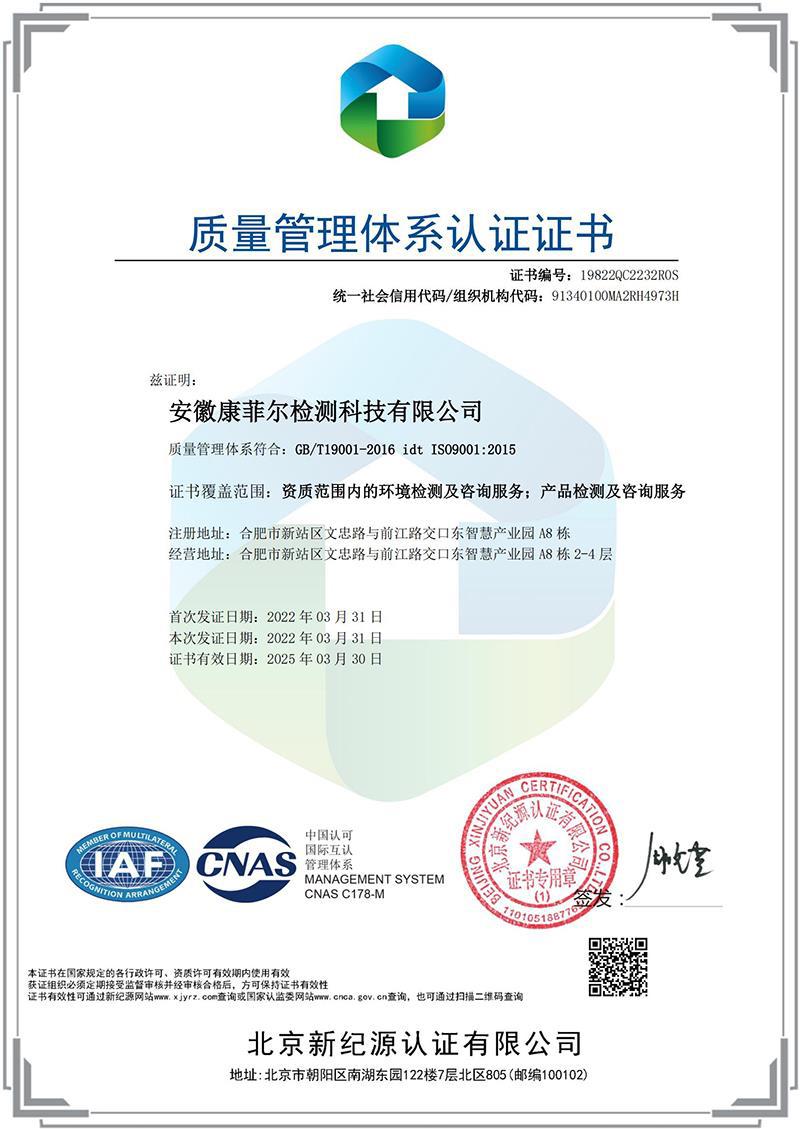 康菲爾檢測(cè)科技,組建于2016年,注冊(cè)成立于2018年,注冊(cè)資金2000萬,上市公司(股票代碼:688659)全資子公司。“雙C”(CMA&CNAS)認(rèn)證認(rèn)可實(shí)驗(yàn)室、高新技術(shù)企業(yè)、科技型中小企業(yè),通過了三標(biāo)一體化體系認(rèn)證,是環(huán)境保護(hù)領(lǐng)域的綜合型科技服務(wù)商。