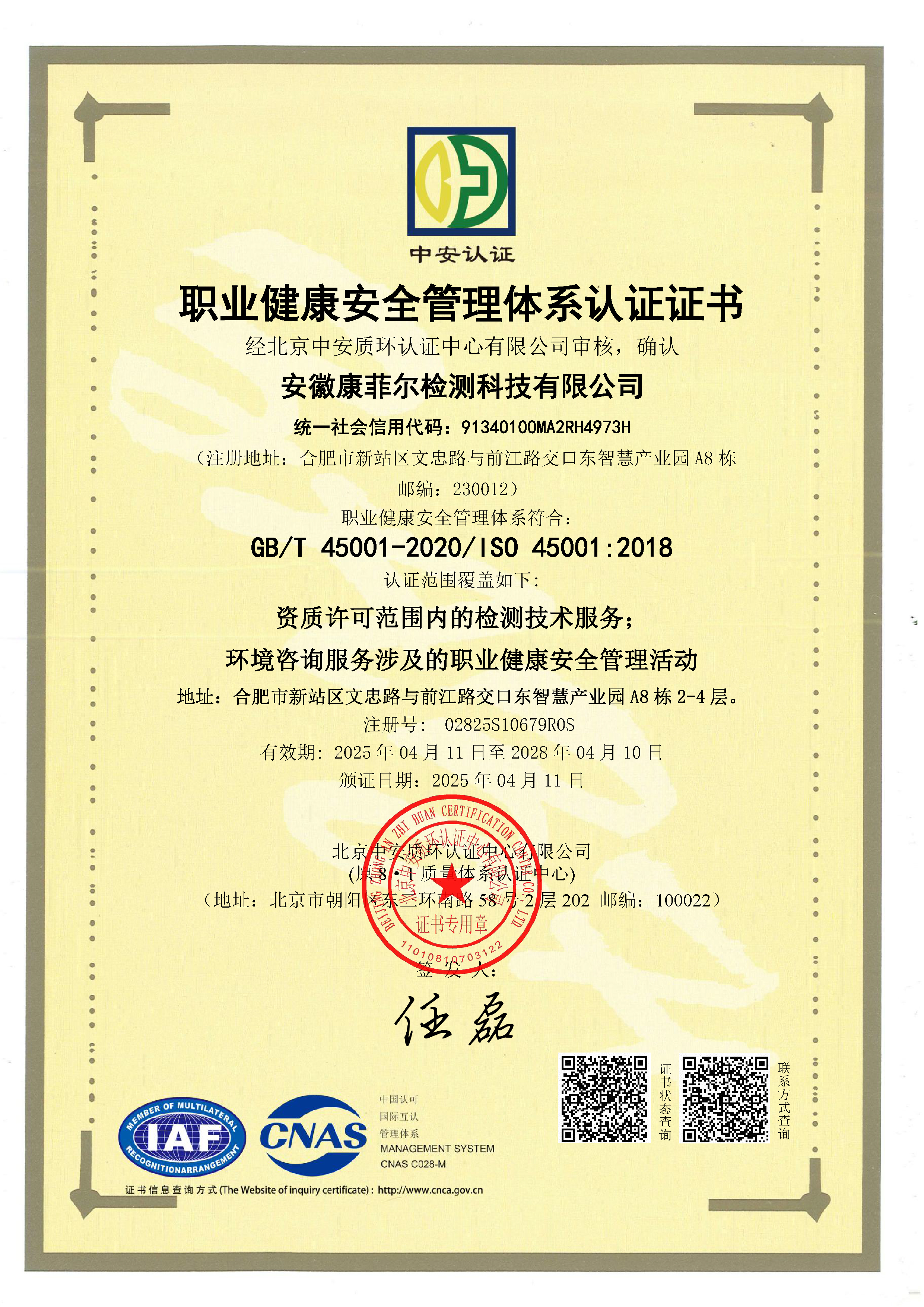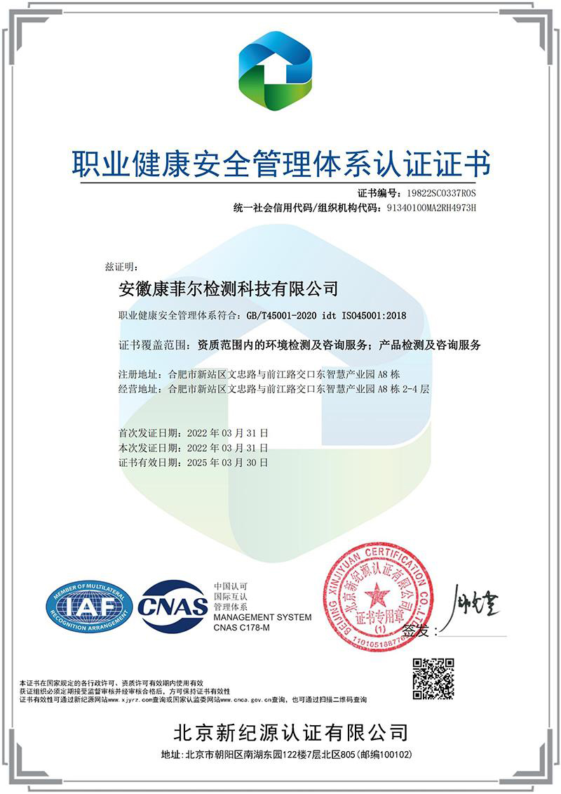 職業(yè)健康安全管理體系認(rèn)證證書